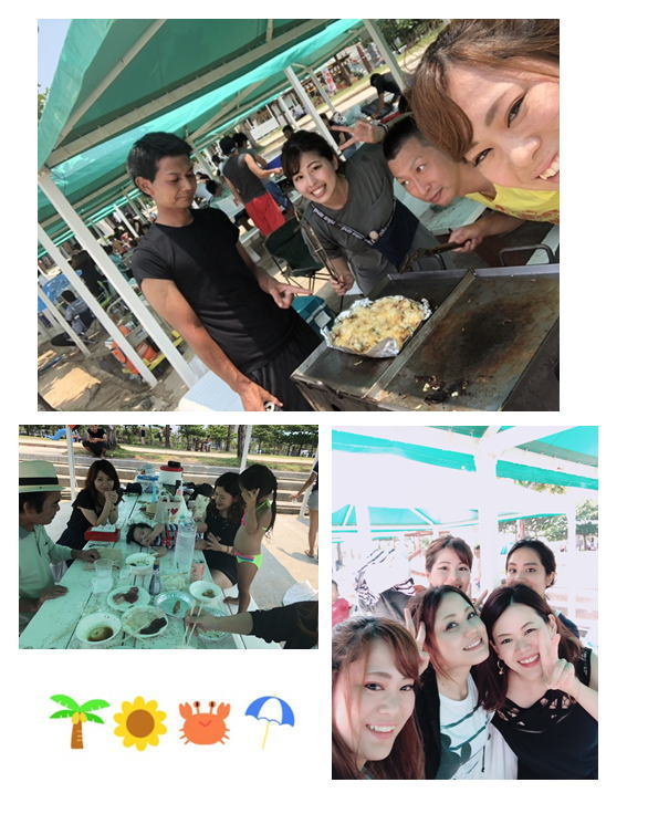 そして、BBQ以外にもジェスチャーゲームやビーチフラッグ等のゲームを企画していたのですが、海が大好きな子供達と海で泳いでいると時間があっという間に過ぎ、、、\(゜ロ\)