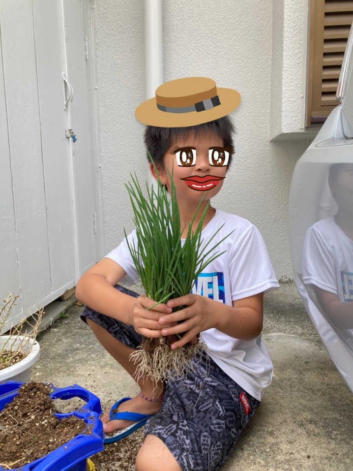 そんな私ですが、先日息子が学校から持って帰ってきたプランターに息子と一緒に約10個の二十日ネギの球根を植えました。