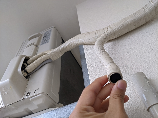 そこを伝ってエアコン内部から出る水を排水しているのですが、