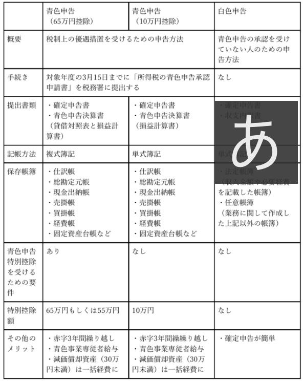 そして先程記述しましたが、青色申告は帳簿は現金出納帳など5帳簿(単式簿記)を揃えれば申告の条件を満たすことができ、10万円の特別控除を受けることが出来ます。これなら自分で申告をし税理士さんに依頼する費用も不要に出来るかも知れませんね。もちろん複式簿記も弥生会計やFREEといった安いソフトでも充分使いやすく、e-Tax(電子申告)で申告すれば最大65万円、窓口での申告であれば最大55万円の特別控除を目指すことが可能です。